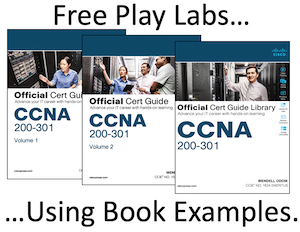 The blog has two types of labs. One type, Config Labs, has a succinct descriptive name. The other type gives you a place to experiment (free play) with the scenarios shown as examples in the books. So, to emphasize what you do when using these labs – free play, rather than specific lab steps – I renamed them to Free Play labs.