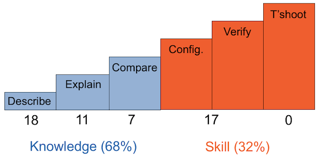 Third, the new CCNA exam has zero mentions of the verb “troubleshooting”. Normally, of the common exam topic verbs that require CLI skills, the verbs “configure”, “verify”, and “troubleshoot” follow a progression from least skill to most skill required. The CCNA 200-125 Exam Topic list mentioned “troubleshoot” 28 times and “config” or “verify” 11 times. The CCNA 200-301 Exam Topic list has a few more config/verify topics by comparison (17), but zero troubleshoot topics.